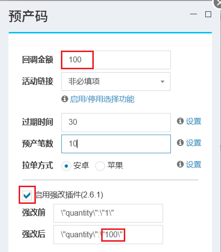2. 如何启用强改:勾选启用强改插件 + 修改强改后的数量