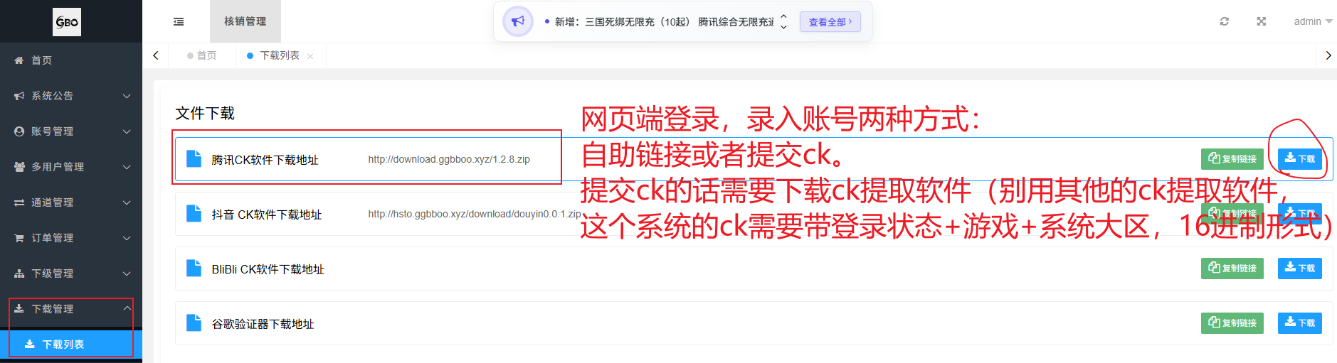 - 生成卡密:复制卡密发给客户,让客户扫码录入即可